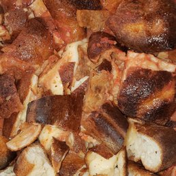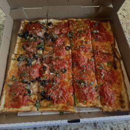 There are only a few places that are as good as LaVilla in my opinion. They make excellent tomato pies and thin crust Sicilian pizza. During the week their they offer an assortment of choices from their warm food smorgasbord of sorts that fills your plate to the brim. Go for the pizza and bring one home.